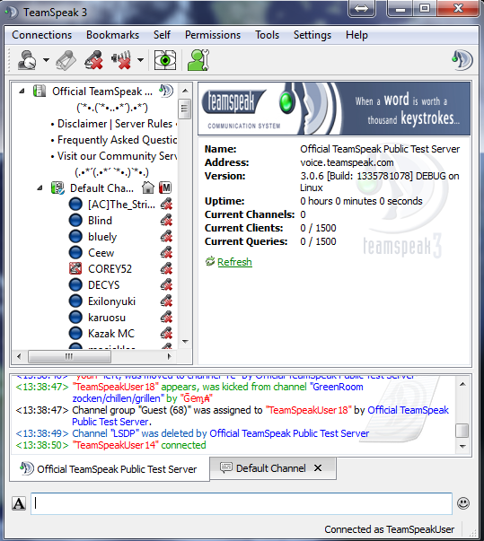 Teamspeak is software for quality voice communication via the internet. Team speak 3 sunucu kullanıcıları bu bölümde kullandığı sunucuya göre doğru setup'u seçmelidir. Teamspeak 3 technical discussions en/de.
