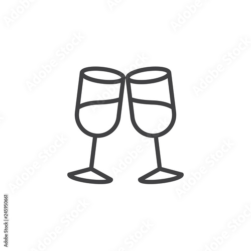 Linear style sign for mobile concept and web design. Hands take two glasses of champagne and clink glasses put into place later. Samsung's design suggests two glasses of white wine.