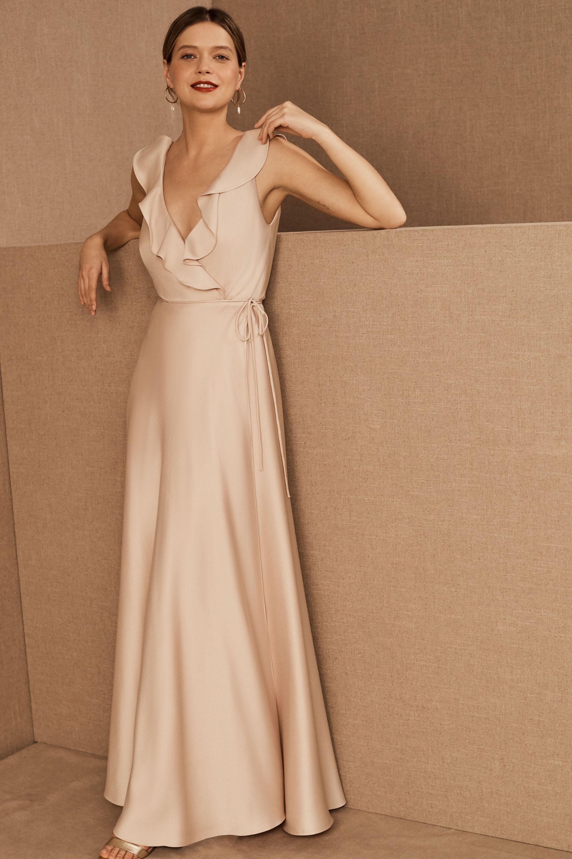 View Satin Champagne Color Bridesmaid Dresses Gif. Gold or champagne satin bridesmaid dresses take on a new luster when made from silk or satin for the ultimate in luxurious style. Shop styles in shades of champagne, beige and taupe from tons of designers!